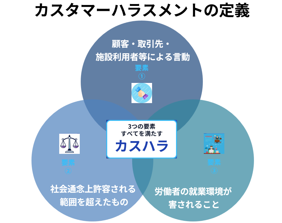 以下の3つの要素をすべて満たすものがカスハラに該当します。