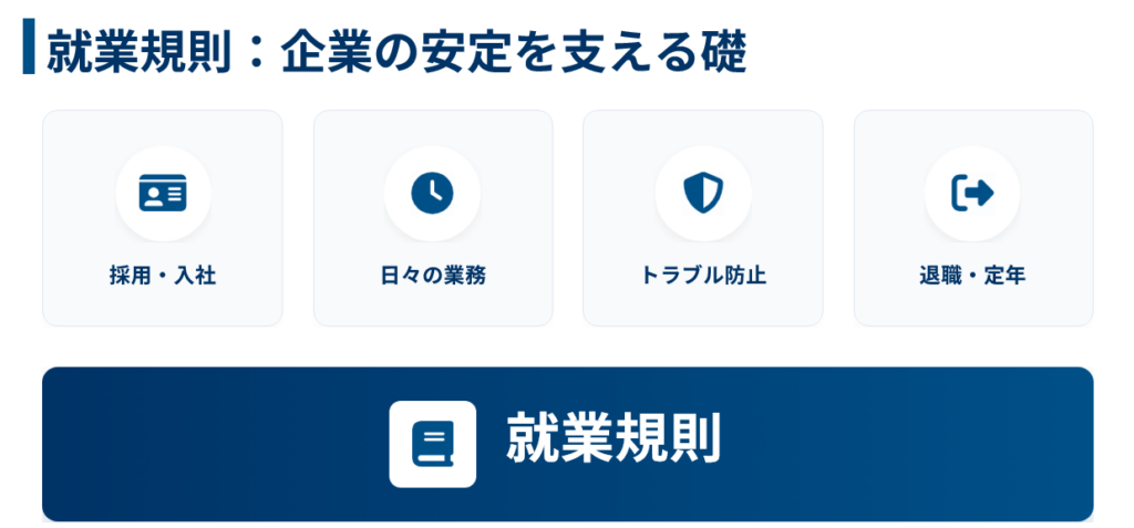 裏を返せば、就業規則は「守り」の書類ではなく、採用・定着・コンプライアンス・助成金活用まで、あらゆる経営活動の土台です。