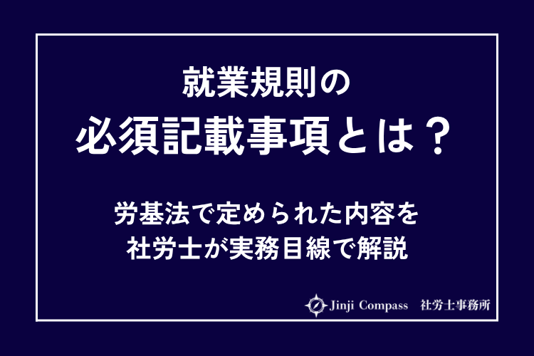 埼玉県さいたま市を拠点に全国の中小企業を支援するJinji Compass 社労士事務所です。この記事では、就業規則に記載すべき事項を、単なる法律の説明にとどまらず、実際の会社運営でどこが問題になりやすいのかという視点も含めて、わかりやすく解説します。